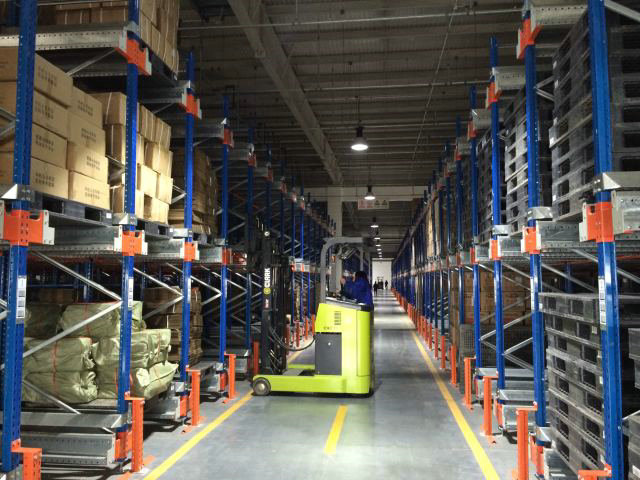 穿梭車貨架系統的使用非常方便,首先用叉車將穿梭車放入軌道的前端,軌道的截面為傾斜狀,方便將小車置入,然后將貨物放在軌道上的初始位置,這時操作遙控器按下自動入庫鍵即可將帶有托盤的貨物運入巷道深處完成存儲的動作。取貨時同時將小車置入軌道的初始位,操作遙控器按下自動出庫鍵,穿梭車將貨物搬運至軌道端頭,叉車將其取下,完成出庫動作,然后轉向下一個通道作業。穿梭車還能夠自動進行A/B面切換,實現穿梭小車在軌道的兩端存取貨。
