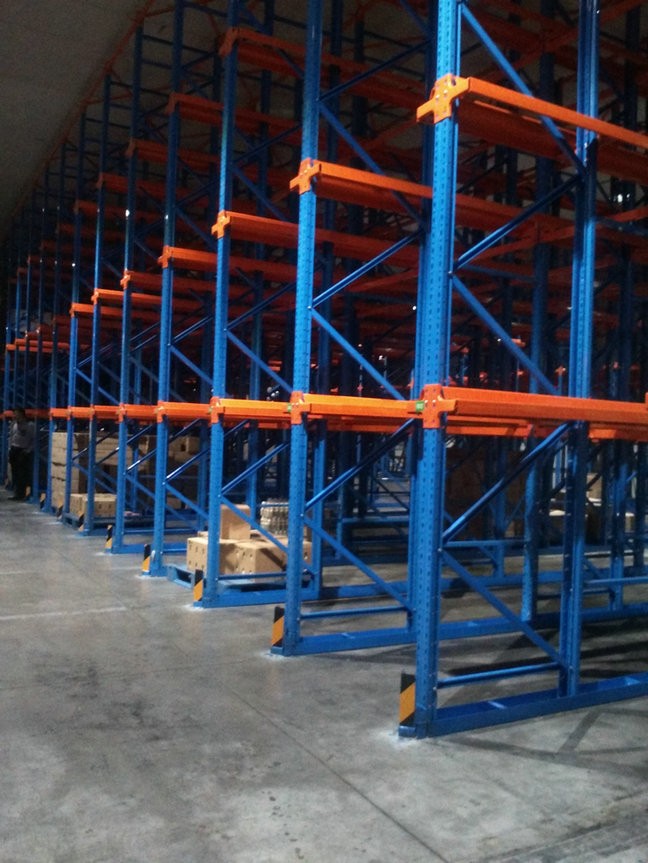 貫通式貨架:是一種不以通道分割,連續性的整體性貨架;貫通式貨架采用托盤存取模式、適用于存放品種單一,大批量的貨物;與托盤貨架相比、倉庫利用率可達到80%左右,倉庫利用空間率可提高30%以上,是存儲效率高的貨架。在支撐導軌上,托盤按深度方向存放,一個緊接著一個。投資成本相對比較低,適用于橫向尺寸較大,品種較少,數量較多,常用來儲存大批相同類型貨物,由于其存儲密度大對地面空間利用率較高,常用于冷庫、食品、煙草等存儲空間成本較高的倉庫。