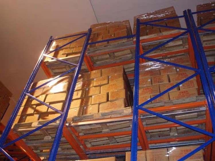 壓入式貨架 1、壓入式貨架是由托盤小車等典型結構件組成,托盤車具有可流動特性,貨物被規定于貨架的一端進出,并遵循先進后出順序。 2、儲運貨物時叉車只位于貨架通道水平較低的一端作業,無需進入貨架貨物存儲通道。此類貨架具有存儲密度高,儲運速度快的典型特征。 3、通常用于存儲場地極其有限,但必須增加存儲容量或對貨物有時間要求等對貨物揀選要求不高的場合使用。